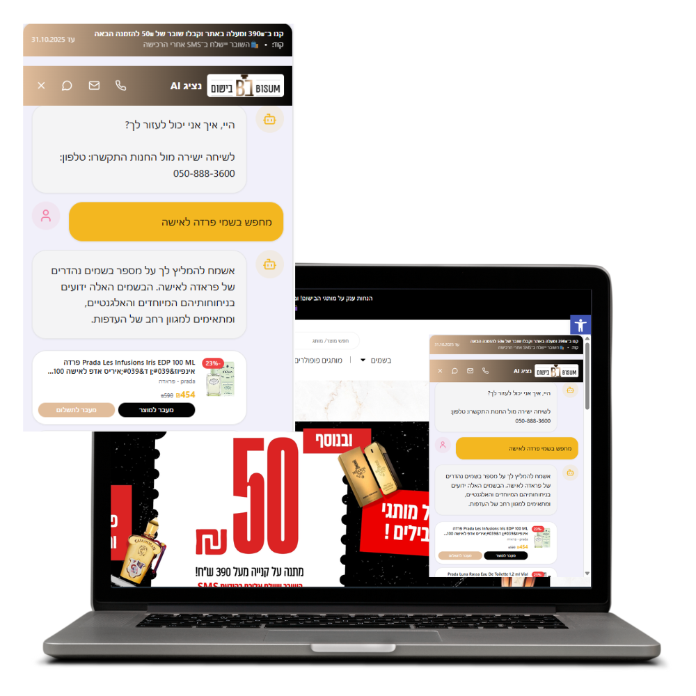 הבוט יודע להציע מוצרים משלימים, להחזיר לקוחות מתעניינים ולשפר את שיעור ההמרות שלך באופן משמעותי.